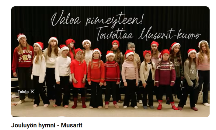 Kempele-opiston perinteikäs lastenkuoro Musarit on julkaissut uuden musiikkivideon Jouluyön hymni -kappaleesta. Ahkerasti esiintyvä Musarit on kempeleläisen kuorolauluperinteen taidonnäyte. Musarit on tunnettu muun muassa kempeleläisen säveltäjämestari Jussi Rasinkankaan säveltämien kappaleiden esittäjänä.