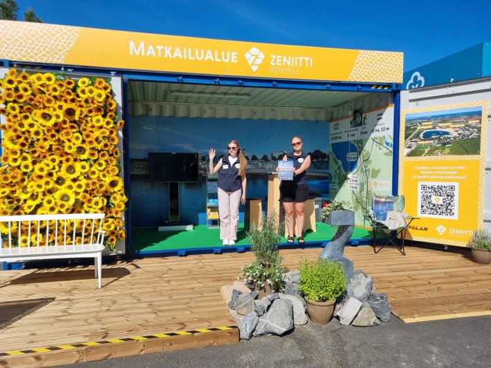 Oulun asuntomessut aukeavat huomenna perjantaina! Kempeleen kunta osallistuu messuille omalla osastolla, jolla tuodaan esille Zeniitin matkailu- ja virkistysaluetta. Osastolla toimivat esittelijöinä kunnan työntekijät ja valtuutetut sekä messuille palkatut työntekijät Lilli (kuvassa oikealla) ja Pinja. Osaston löydät messujen ravintolamaailman läheltä paikalta E2.